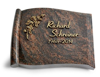 Eine andere Möglichkeit besteht darin, um die einzelnen Buchstaben herum eine Vertiefung in den Urnengrabstein zu schlagen (Vertieft/Erhaben). Die Fläche der Buchstaben behält dabei die gleiche Farbe und Oberfläche wie der Rest des Steins. Neben der Gravur besteht zudem die Möglichkeit, die Grabkissen-Beschriftung als eine Art Relief auf dem Grabbuch aufzusetzen. Als Material für die Buchstaben wird dabei oft Bronzeguss, colorierter Bronzeguss oder Aluminiumguss für die Grabsteininschrift verwendet. Diese Möglichkeiten lassen die Wahl zwischen verschiedenen Schriftarten und Farben zu.